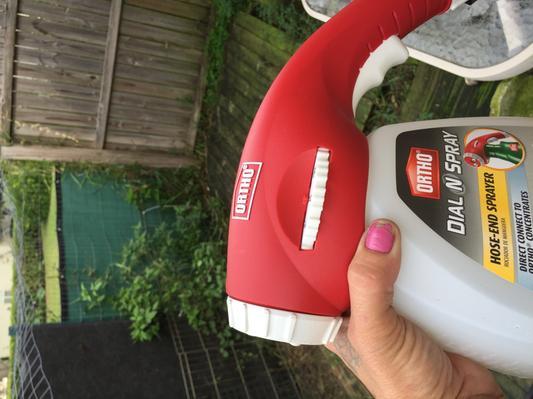 Ortho Dial N Spray Hose End Sprayer. For use on Kentucky bluegrass bahiagrass common bermudagrass fescues perennial ryegrass and zoysiagrass add 30 fl. Start spraying close to the sidewalk or street side of your yard and work your way in towards your home. For application with the Ortho Dial-N-Spray bottle add 60 fl. This is a step by step for using the Ortho Dial and Spray. If your Ortho Dial n Spray is having trouble picking up the water we have a secret for you. ORTHO HOME DEFENSE was the only product that worked without sacrificing our familys health in the process.