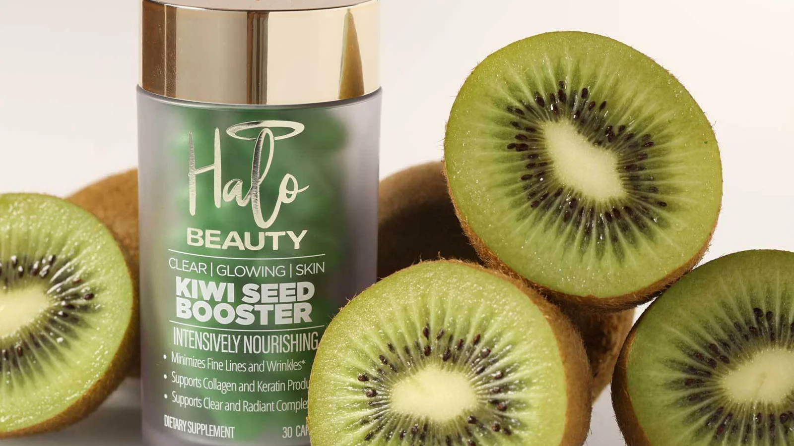 Halo Beautys Kiwi Booster for skin includes 14 natural and safe beauty-boosting ingredients. Halo Beauty Kiwi Booster. Halo Beauty Hair Skin Nails Booster 30-Day Supply 3995.