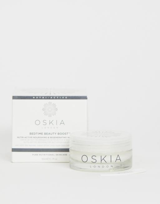 A luxurious night cream Oskias Bedtime Beauty Boost nourishes and regenerates skin as you slumber. OSKIA Bedtime Beauty Boost is a nutri-active nourishing and regenerating night cream which is rich in essential cell nutrients as well as hydrating brightening and anti-ageing actives designed to help stimulate the skins natural regeneration process iron out the appearance of wrinkles reduce age spots and give skin a naturally radiant. Oskia Bedtime Beauty Boost is a luxurious night cream to provide your skin with an overnight health and beauty boost.