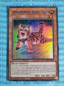 Amazoness Baby Tiger x3 Amazoness Swords Woman x3 Amazoness Spy x3 Amazoness Tiger x2 Amazoness Scouts x2 Amazoness Paladin x1 Amazoness Sage. Amazoness Baby TigerThis monster resembles to Tanias real form. You can Special Summon this card.