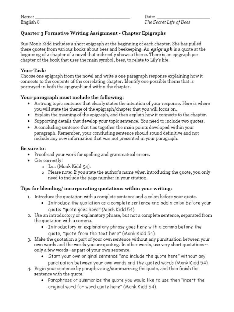 The Secret Life of Bees. Some important quotes of the book are when we witness TRays abuse of Lily Rosaleens love for Lily and how Lilys teacher makes her realize her true potential and abilities. She saw right through it.